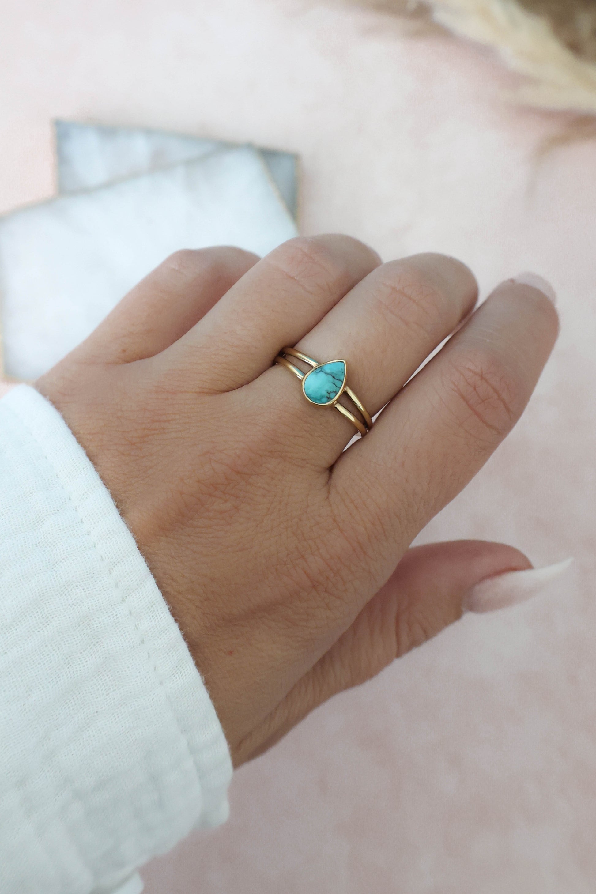 Dainty genuine Turquoise ring with a double band set in 14k gold vermeil over 925 sterling silver. Love it for its minimalistic design but with a pop of color!