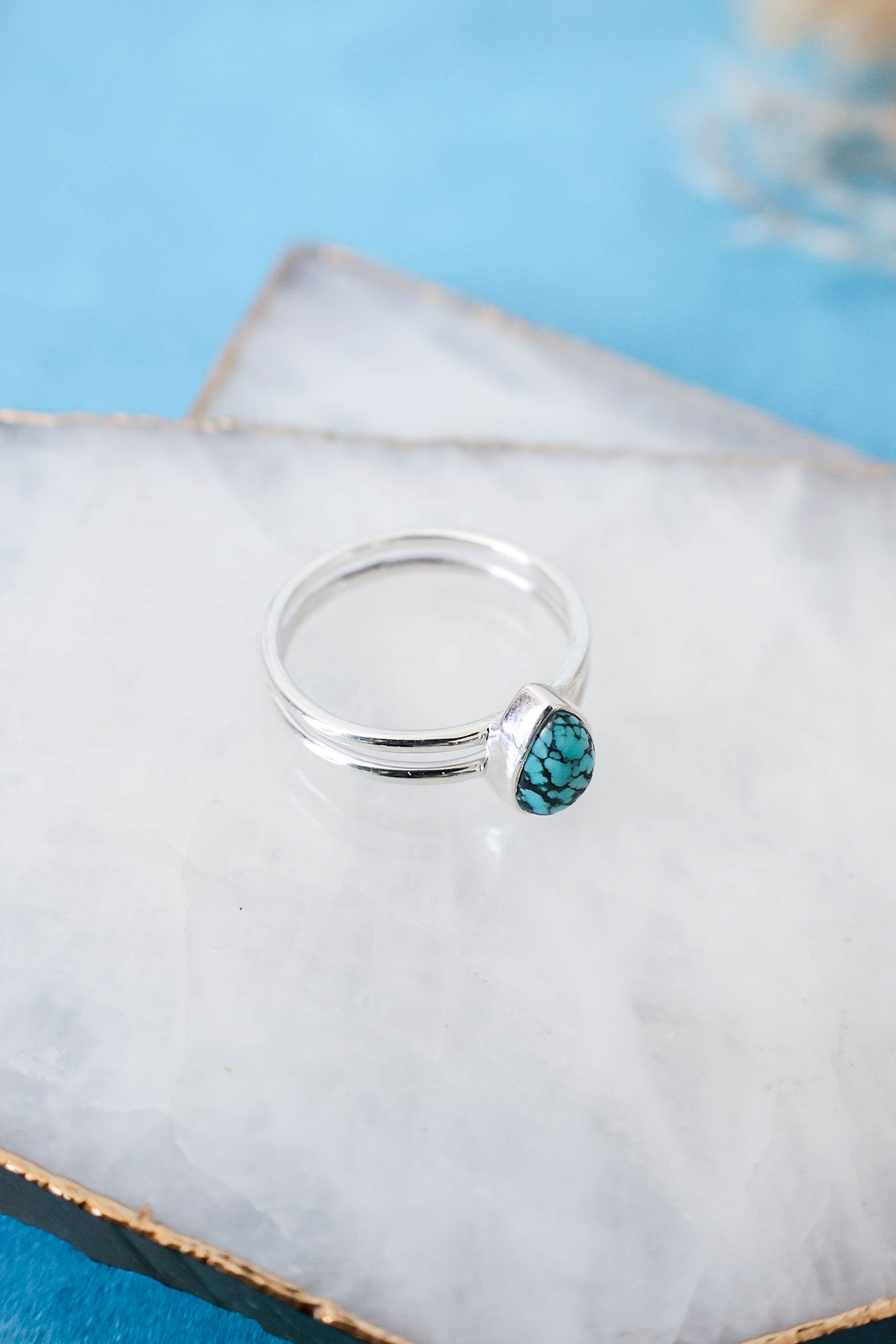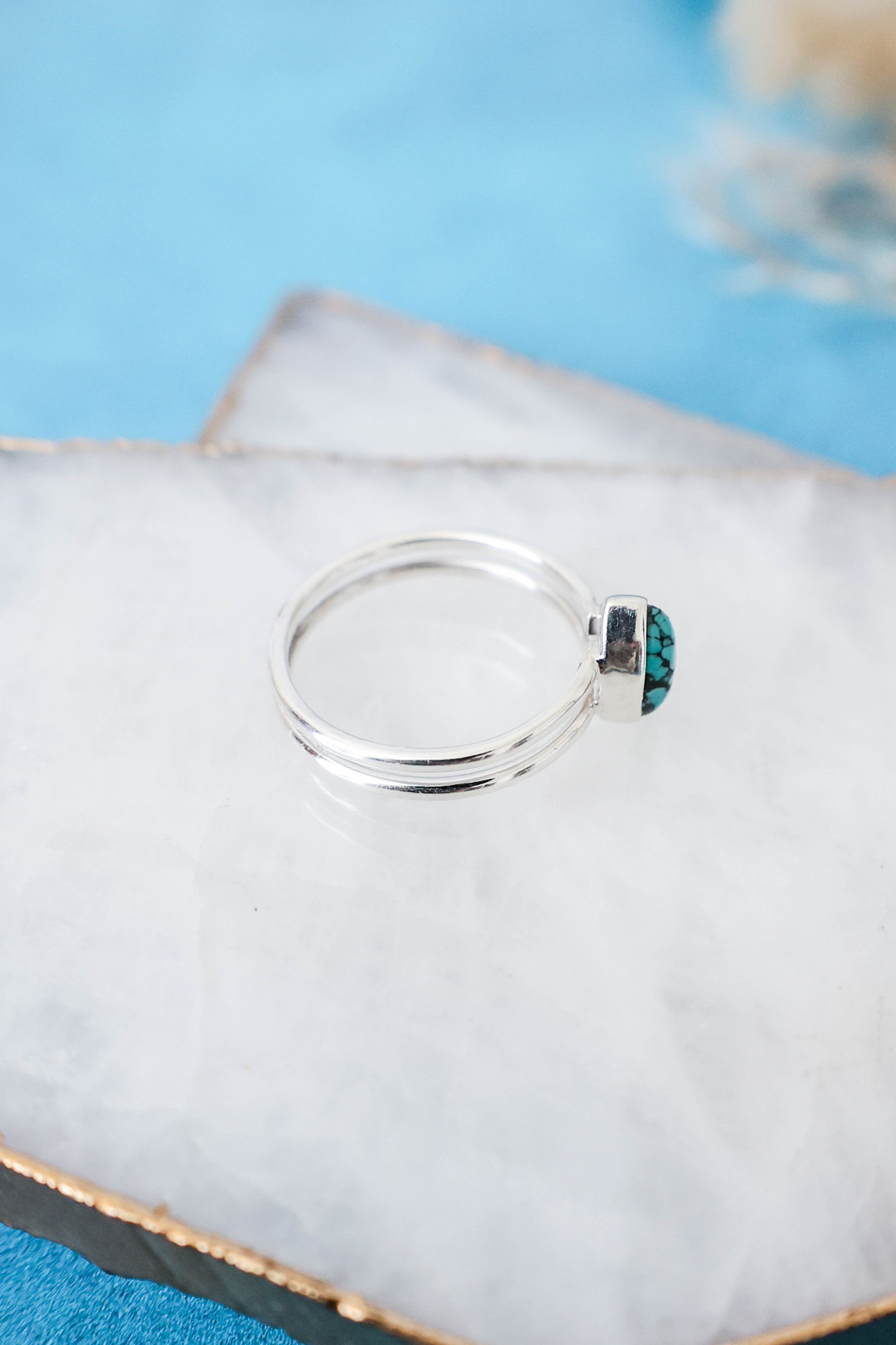 Dainty genuine turquoise ring with a double band made of 925 sterling silver. Love it for its minimalistic design but with a pop of color!