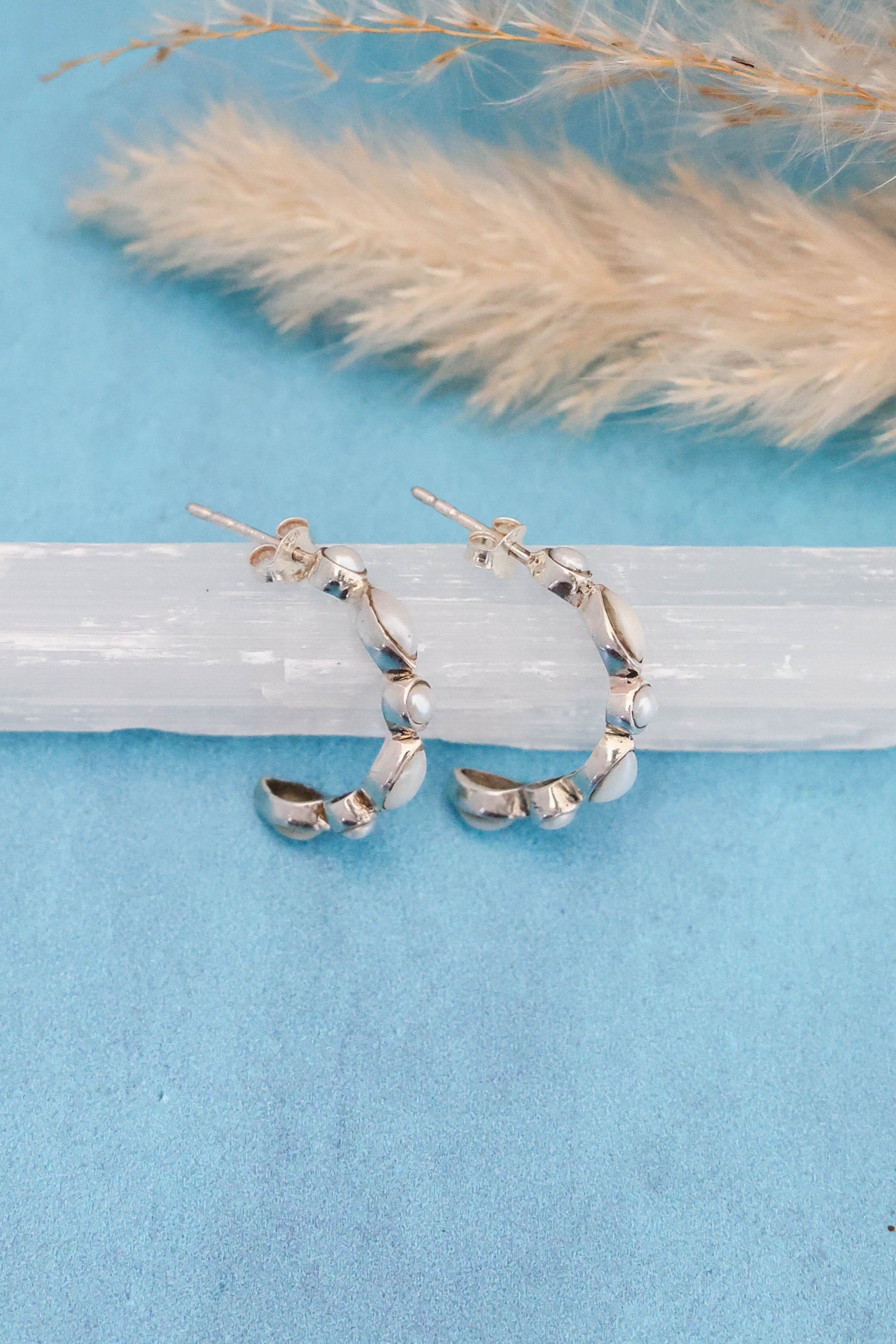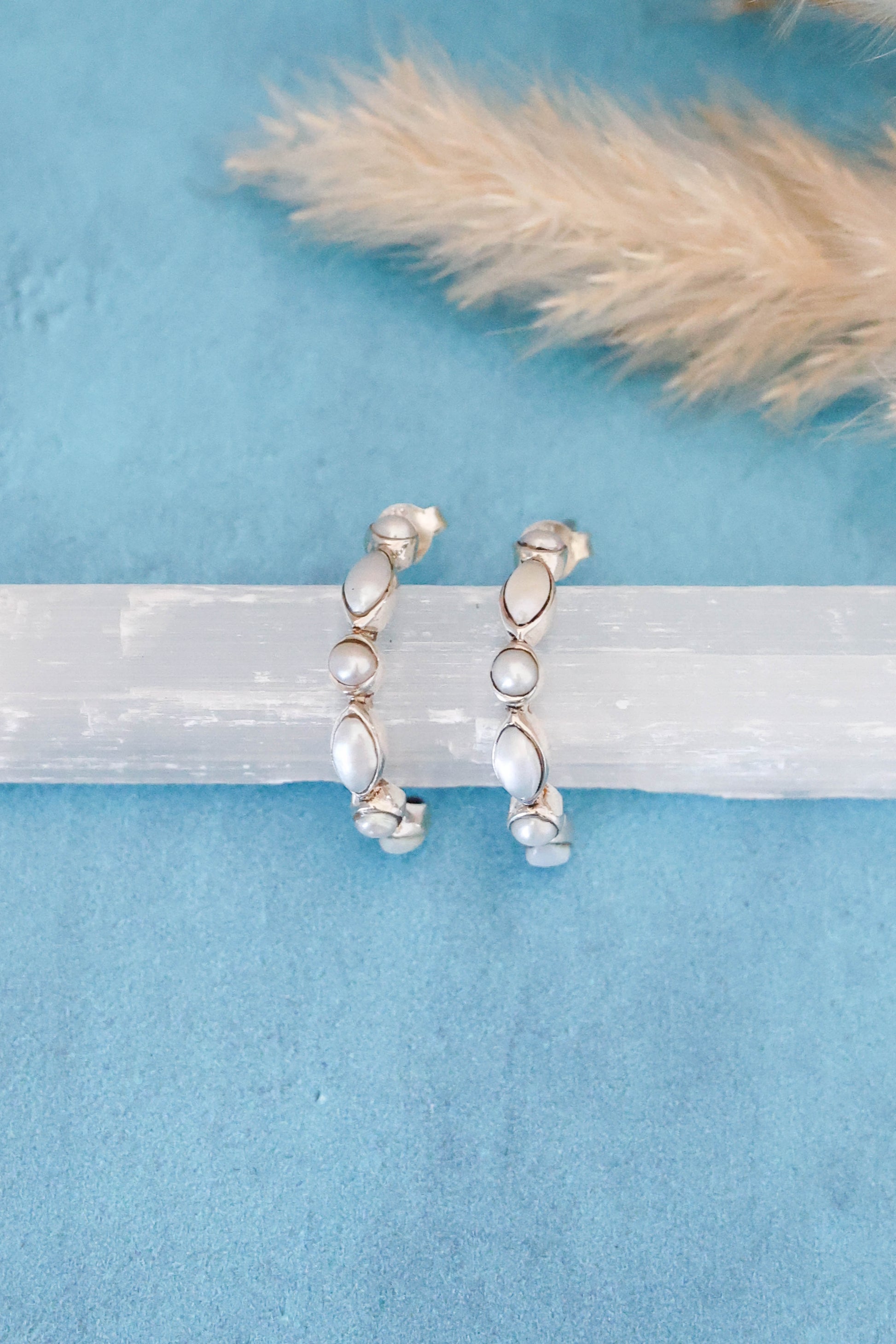 It's all in the details and these earrings have it all figured out. These dainty pearl half hoops set in 925 sterling silver are ready to fit right into your ear stack. Their marquise stones between two dainty round stones give them dimension and a unique look, while still staying minimal and simple. Make these a matching set with the 'Olivia Ring' to complete your look!