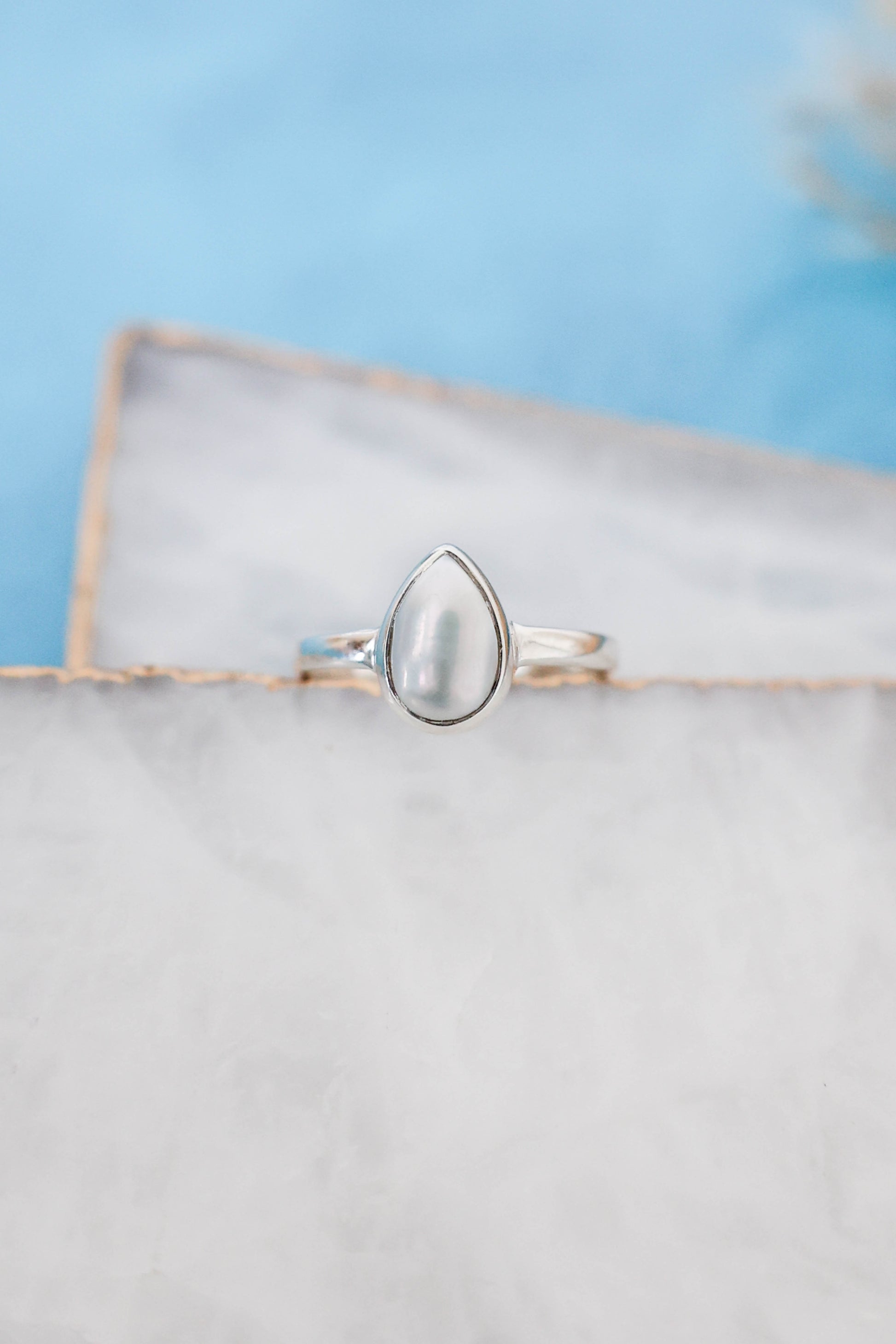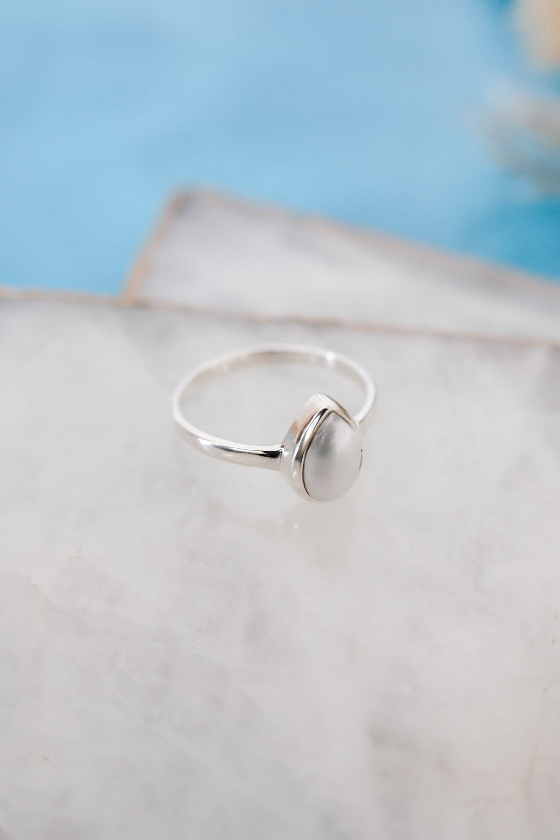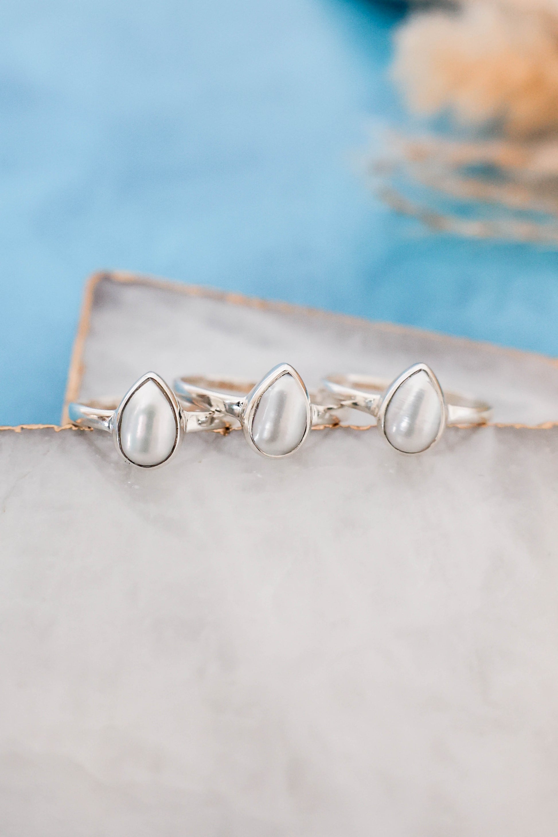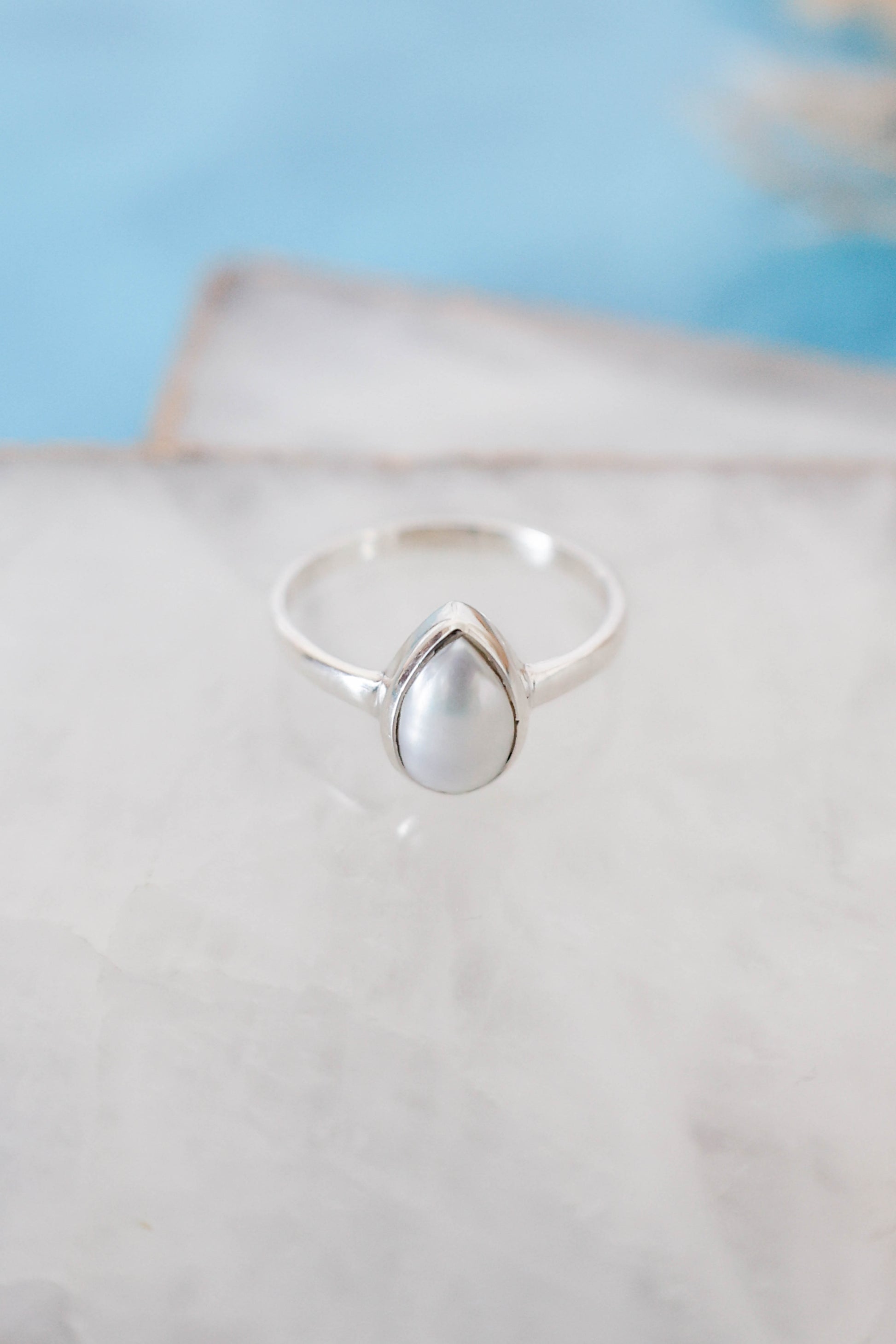 Dainty stackable Pearl ring set in 925 sterling silver. Wear this ring on its own or pair it with others.