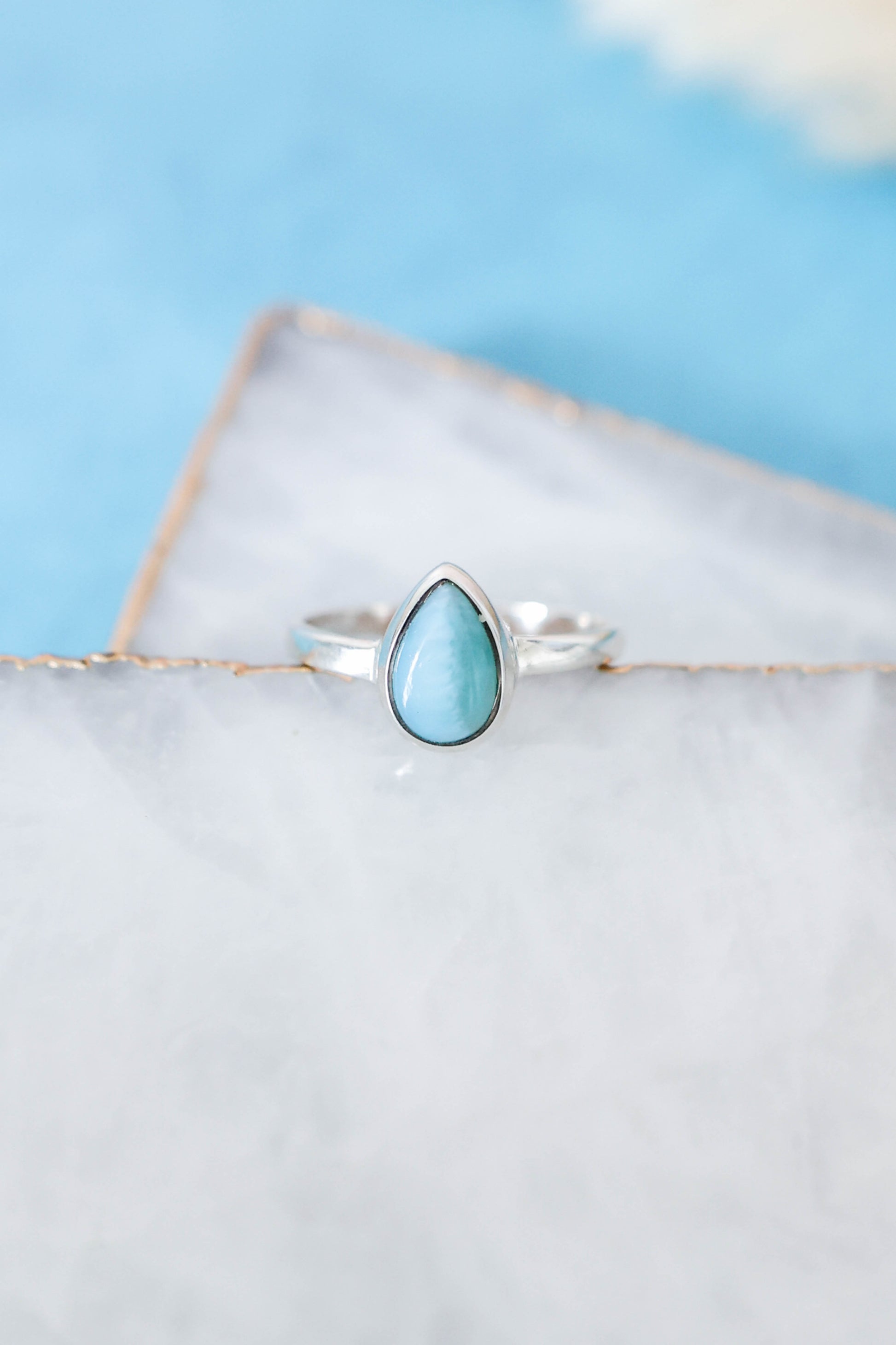 Dainty stackable Larimar ring set in 925 sterling silver. Wear this ring on its own or pair it with others. Add the 'Sole Ring' for a gorgeous sun inspired stacked look as shown in the photos!