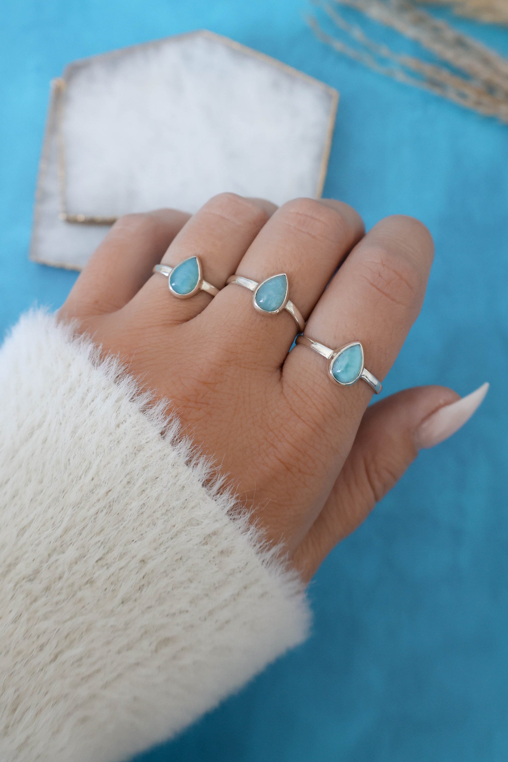 This listing is for ONE Larimar ring. Photos and videos with more than one are to show variation and stacking options. If you like the stacked option shown in the photos, please purchase the 'Sole Ring' to complete the look!