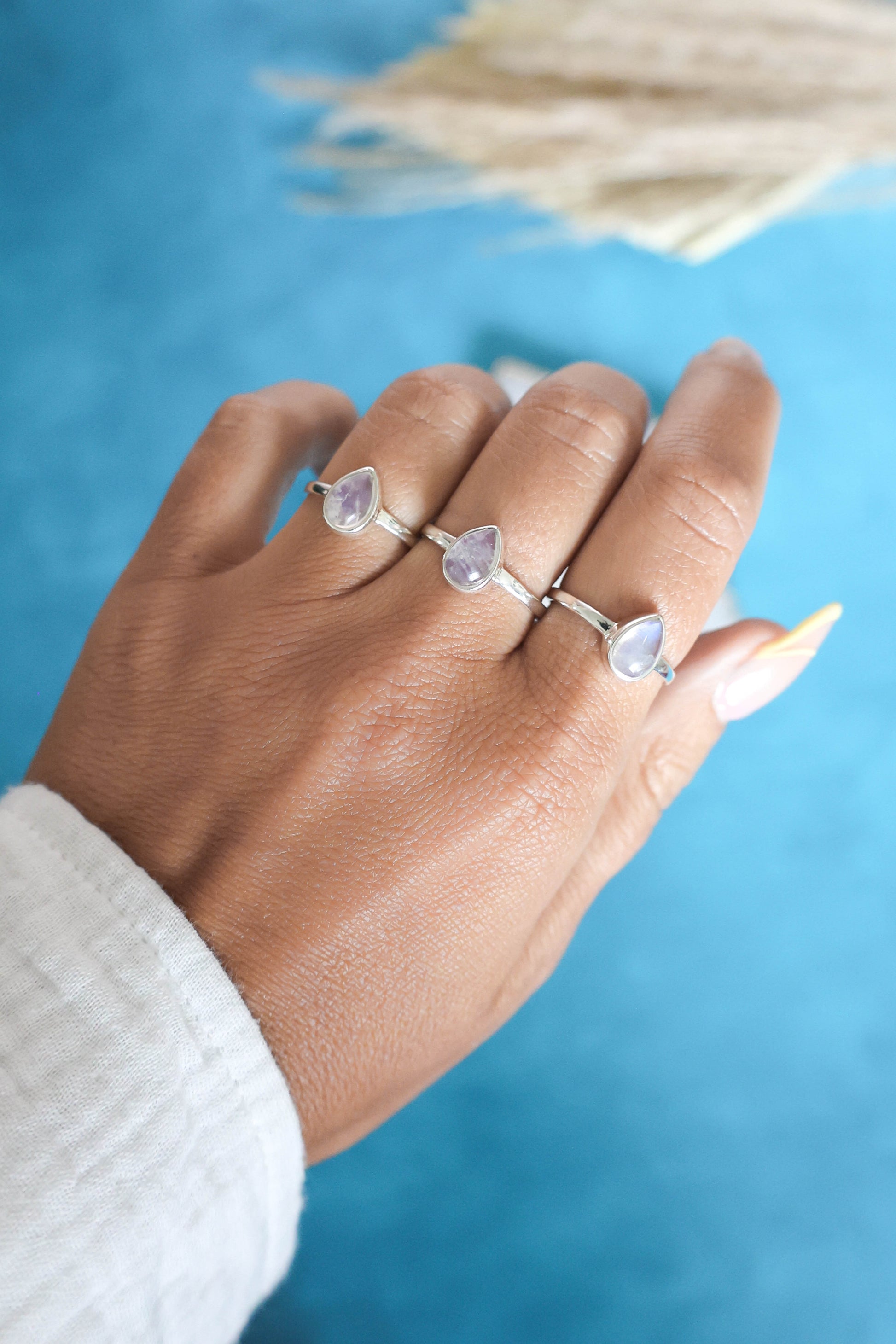 This listing is for ONE moonstone ring. Photos and videos with more than one are to show variation and stacking options. If you like the stacked option shown in the photos, please purchase the 'Sole Ring' to complete the look!