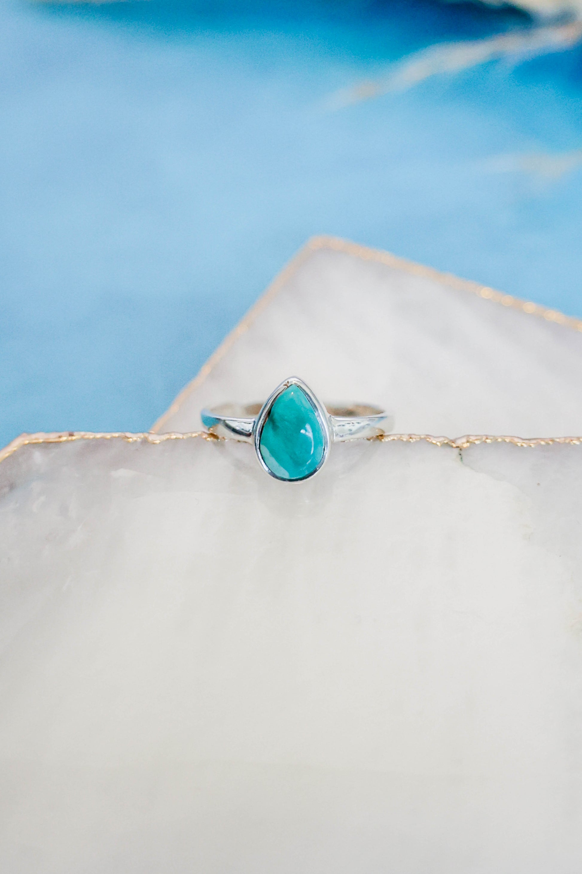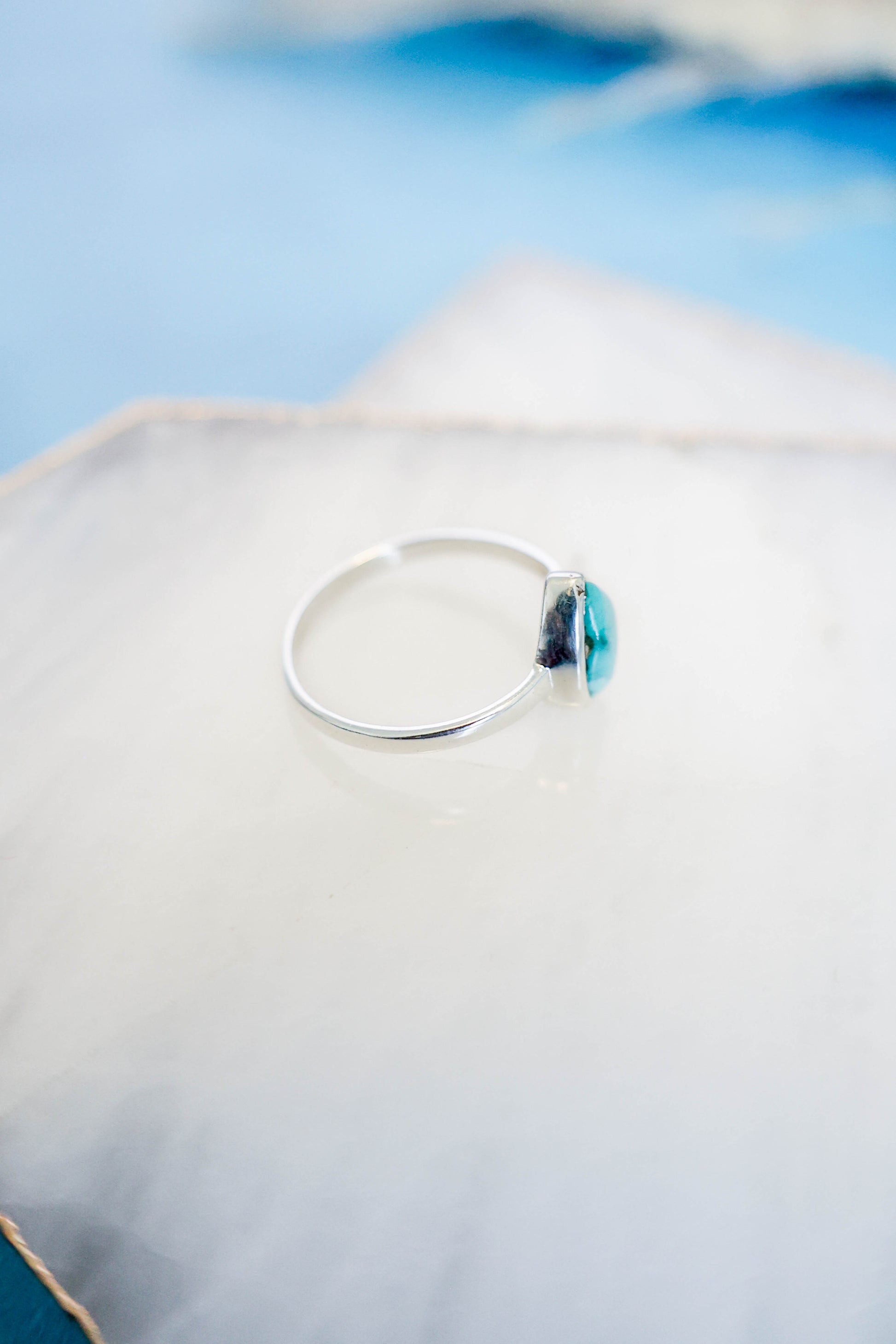Dainty stackable turquoise ring set in 925 sterling silver. Wear this ring on its own or pair it with others. Add the 'Sole Ring' for a gorgeous sun inspired stacked look as shown in the photos!