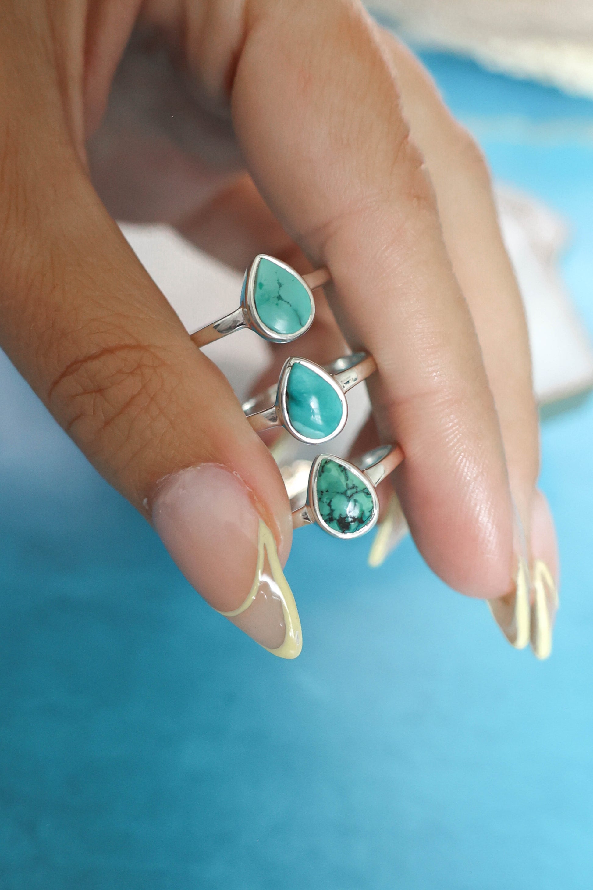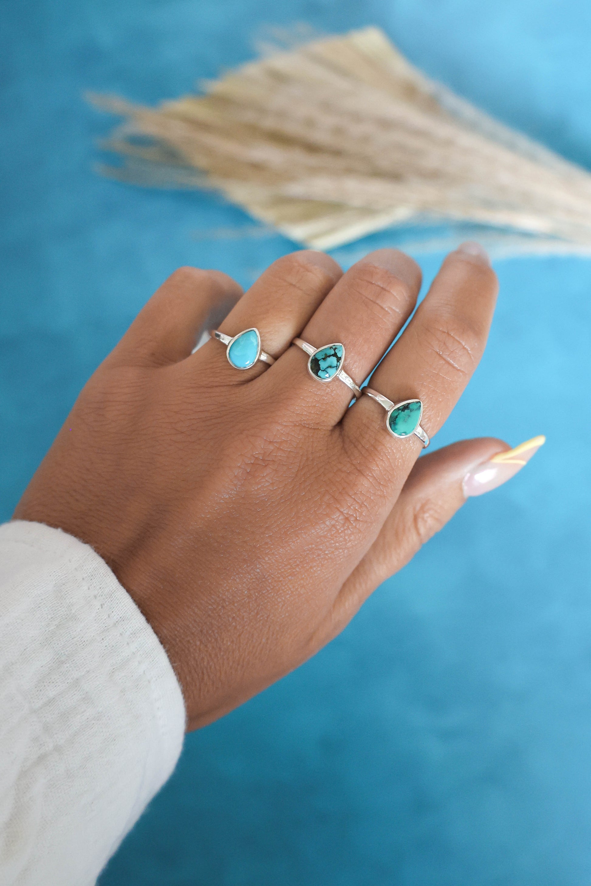 This listing is for ONE turquoise ring. Photos and videos with more than one are to show variation and stacking options. If you like the stacked option shown in the photos, please purchase the 'Sole Ring' to complete the look!