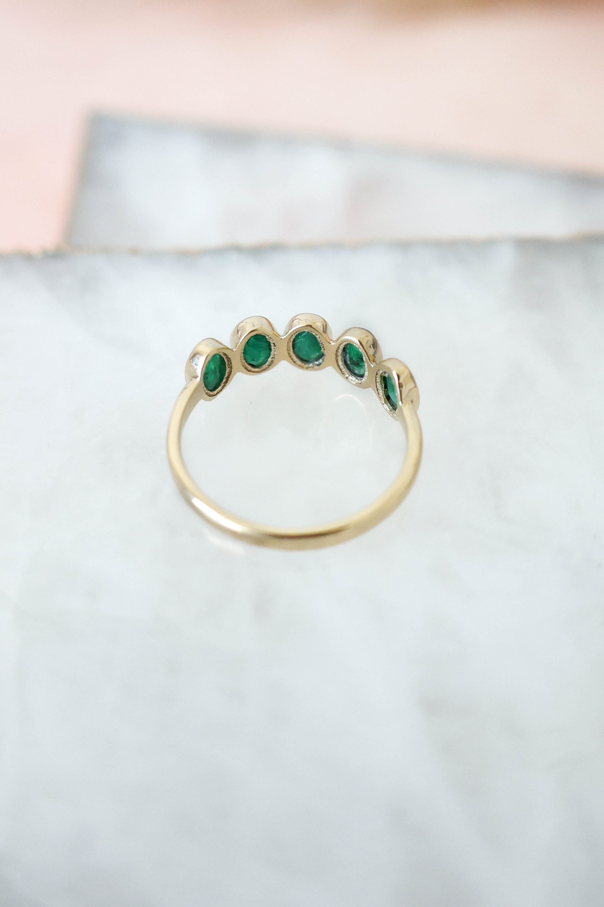 Why have one stone when you can have 5?! This multi-stone emerald ring is set in 14k gold vermeil and we must say, you're going to love this one! She's comfortable, cute, and will fit right into your collection.