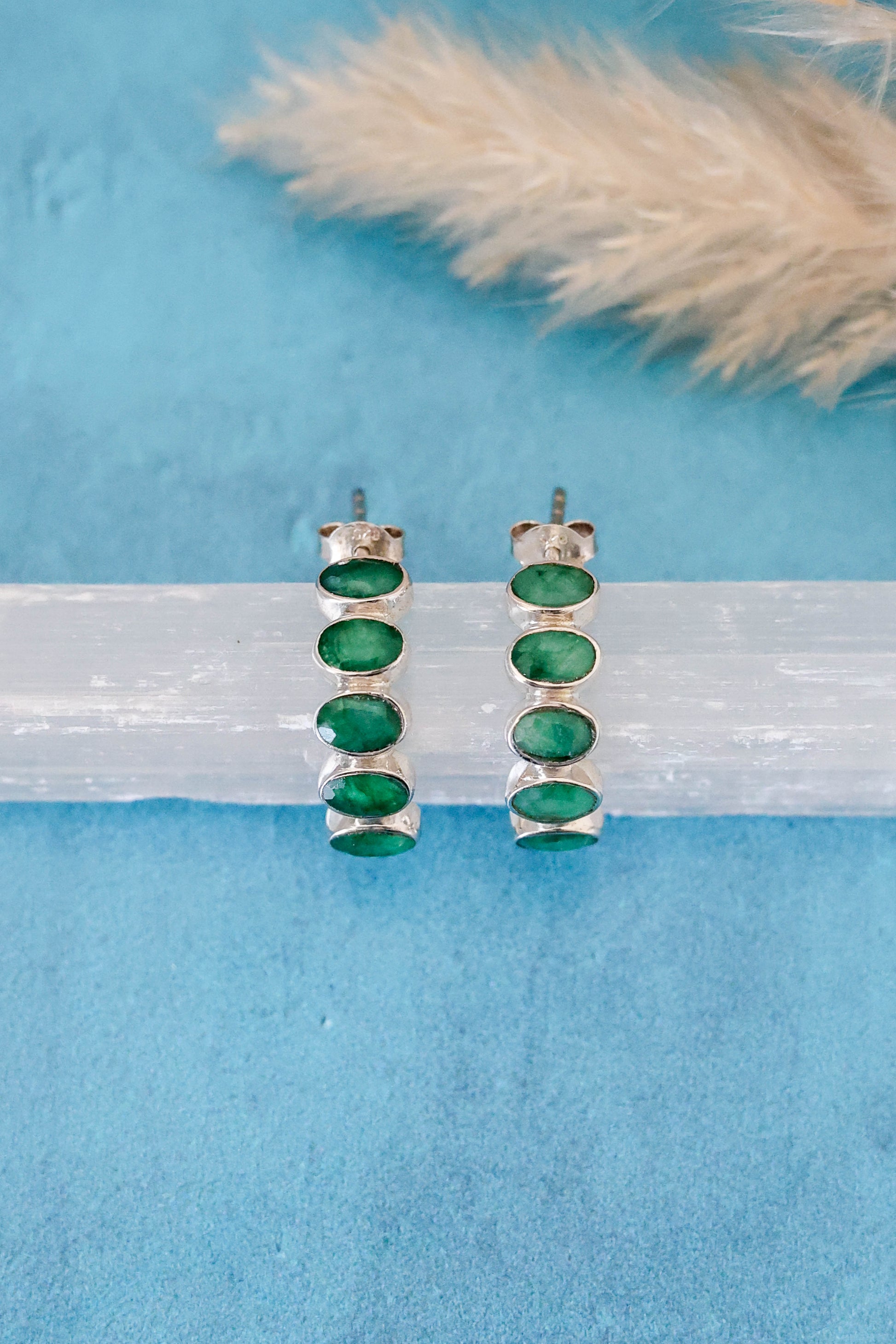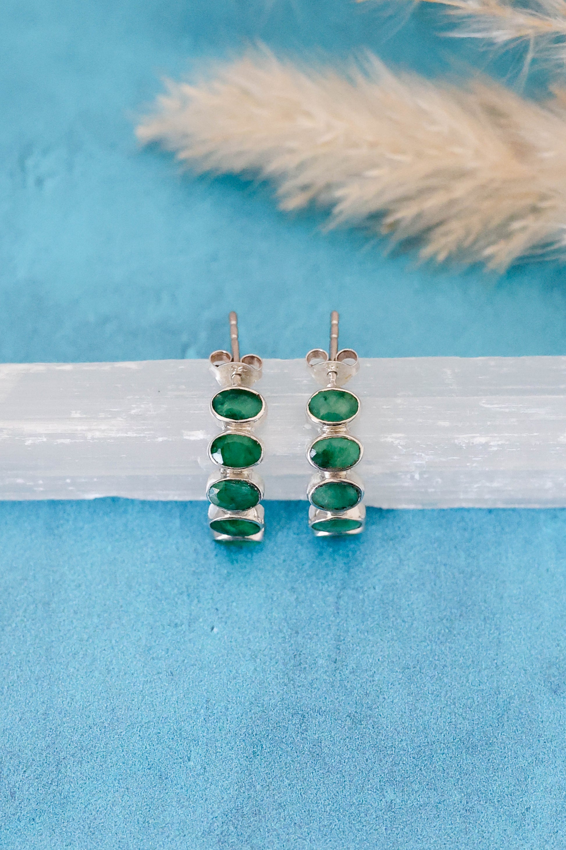 Emeralds are the only stones we use that are not natural! The reason we made an exception for these is because they are pretty darn beautiful. They have a natural stone look, and we are just obsessed. Natural emeralds, being a precious stone, are extremely expensive, so in order to enjoy this gorgeous rich green color, we went with these high quality lab emeralds. We hope you love them as much as we do!