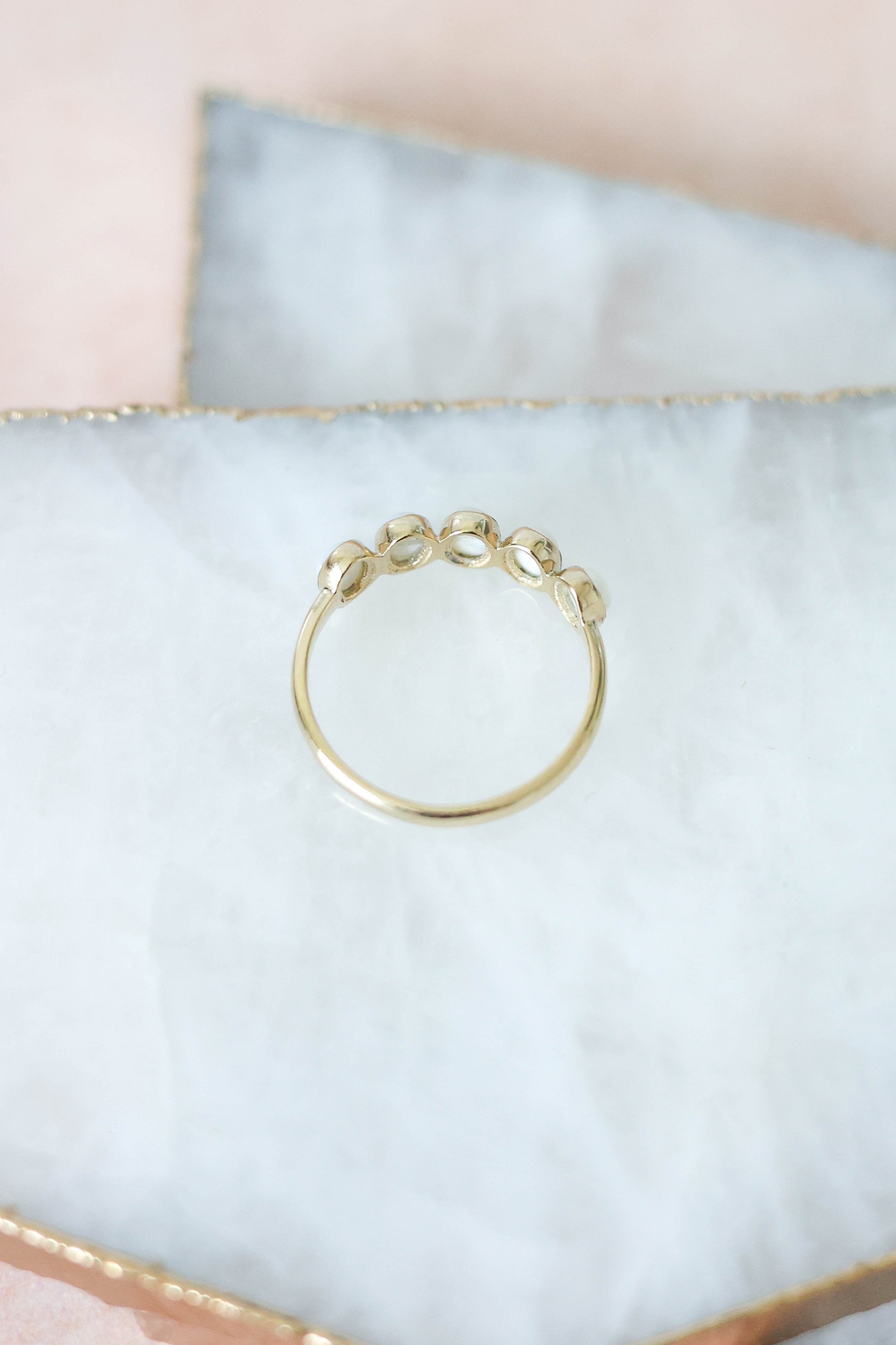 Why have one stone when you can have 5?! This multi-stone pearl ring is set in 14k gold vermeil and we must say, you're going to love this one! She's comfortable, cute, and will fit right into your collection.