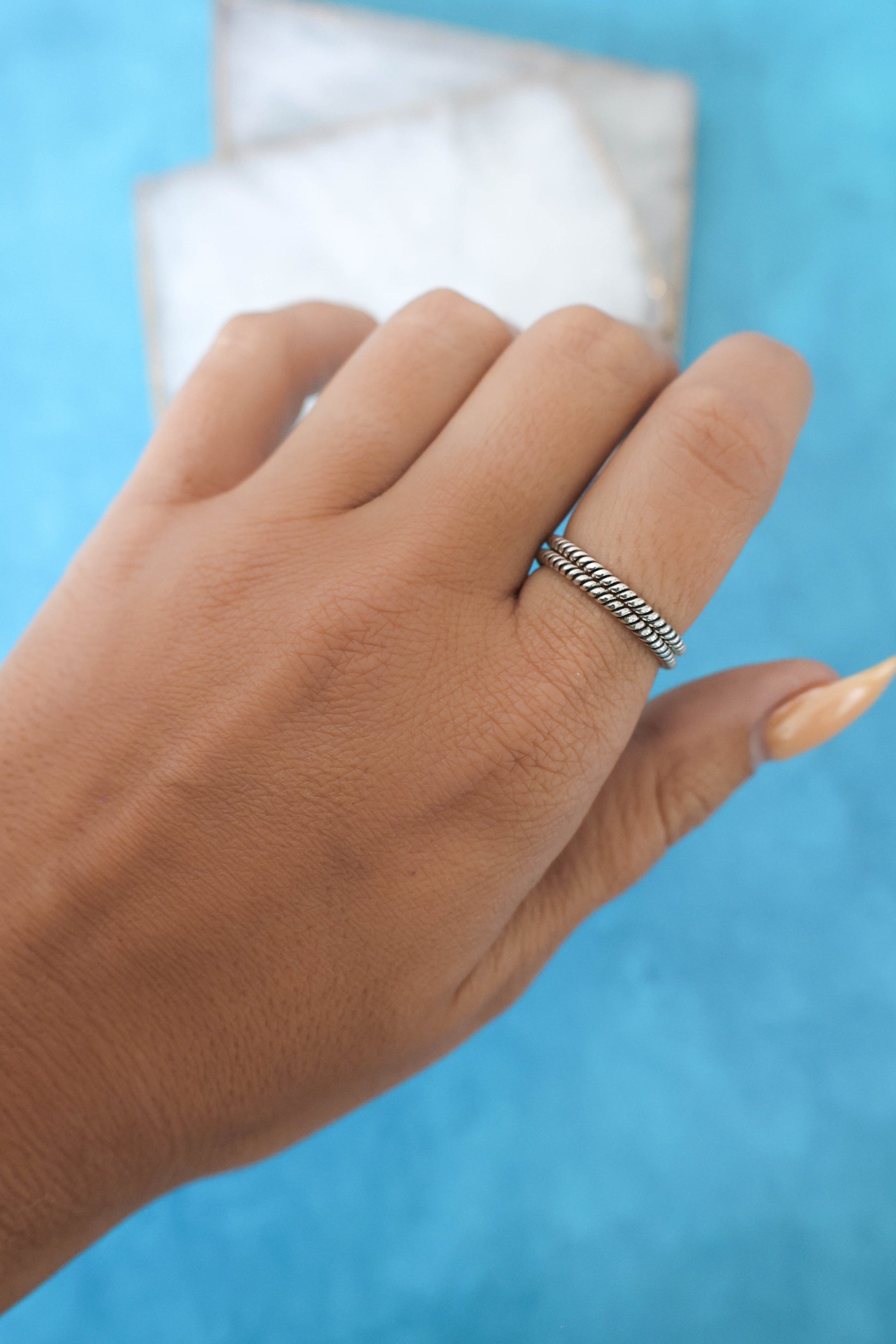 Versatile rope band made of 925 sterling silver. Wear a few stacked together or pair with any of our other stacking bands!