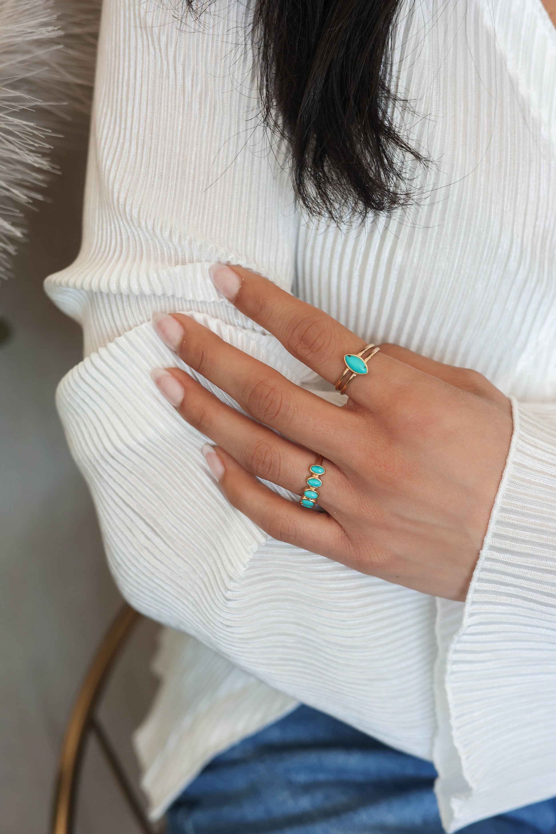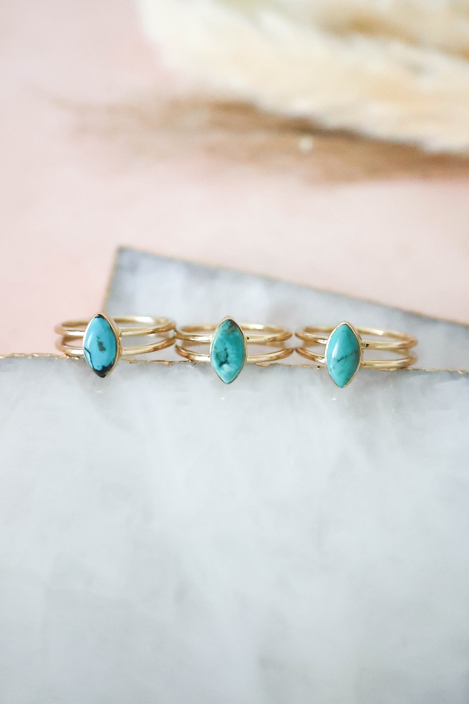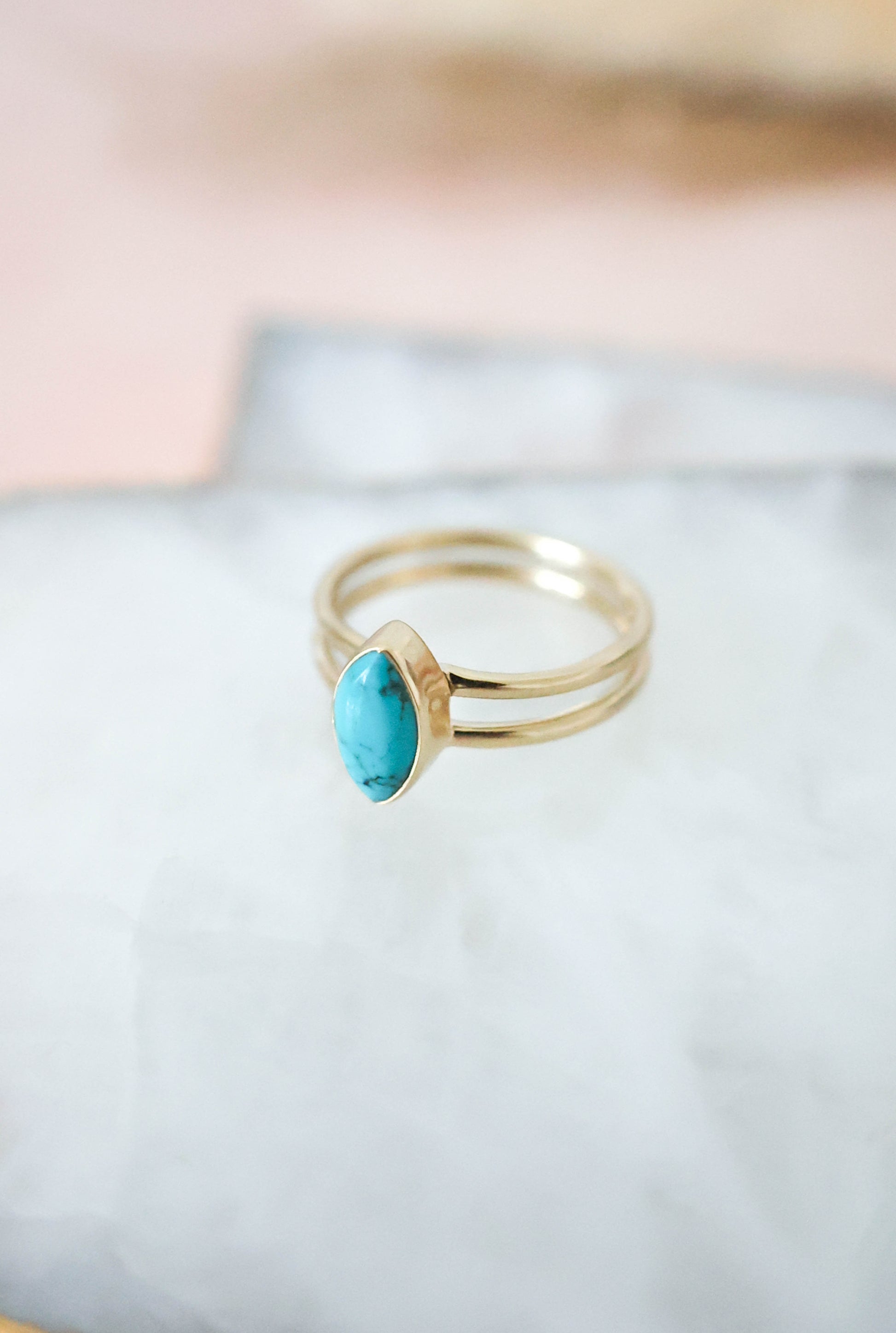 The perfect balance of classic and modern. This turquoise marquise shaped ring is set in 14k gold vermeil. Love this ring for its flattering marquise shape and minimalistic design but with a pop of color!
