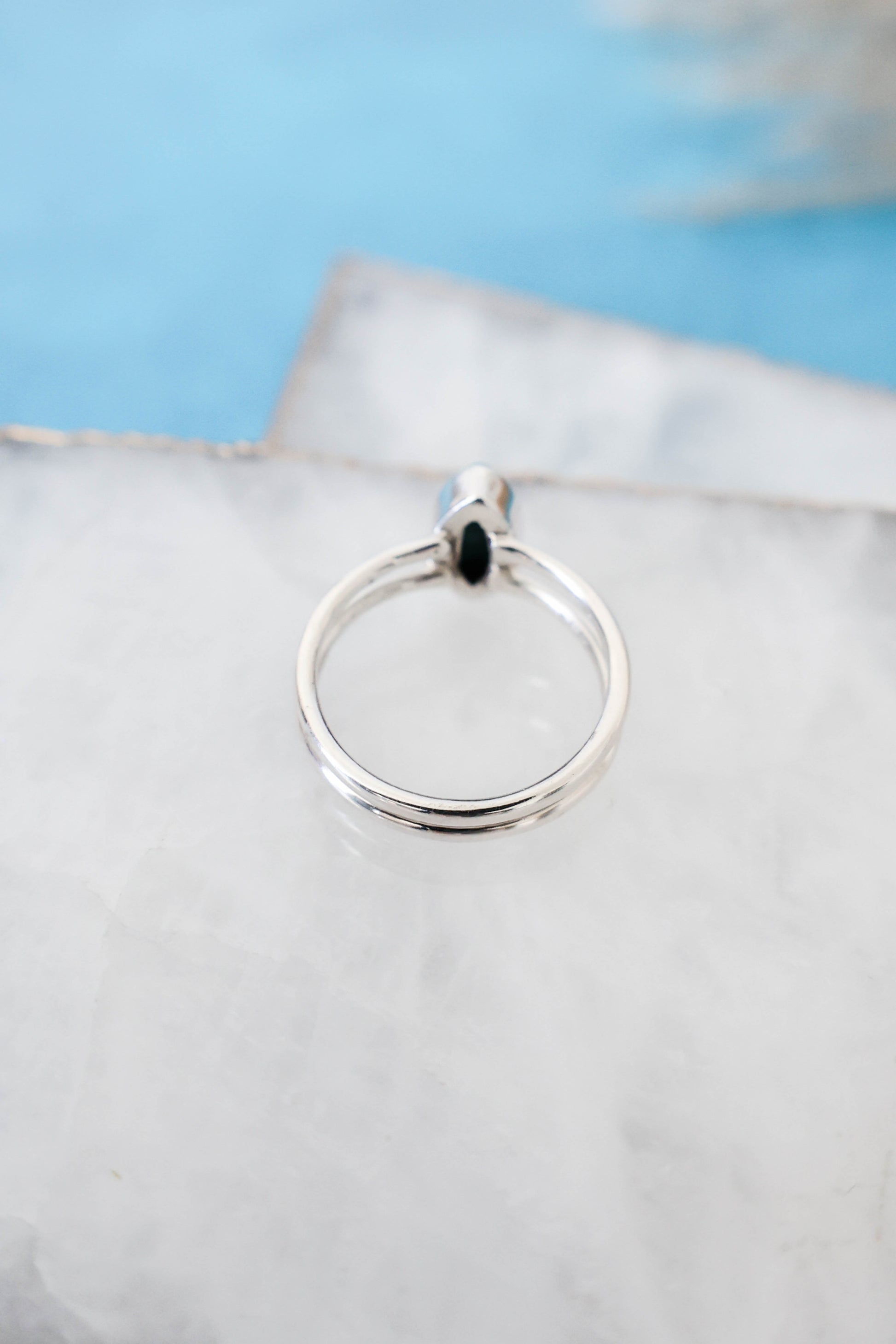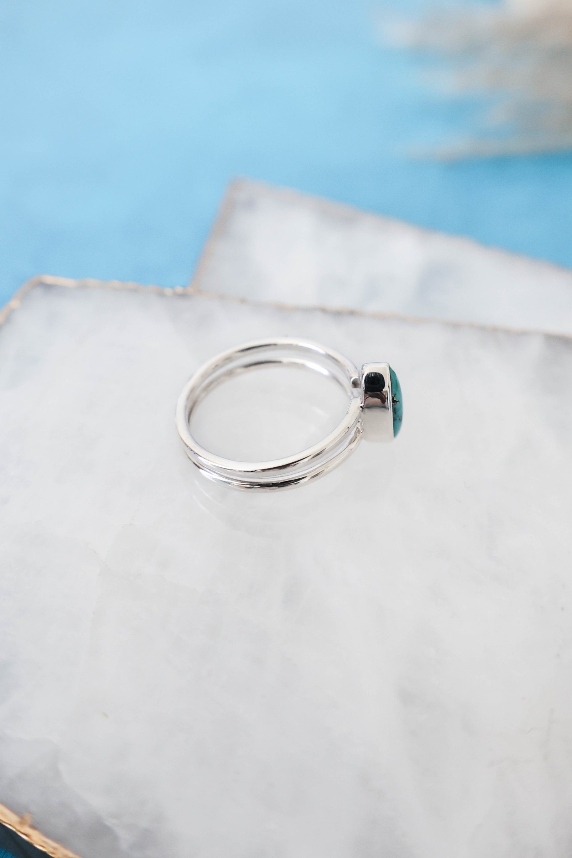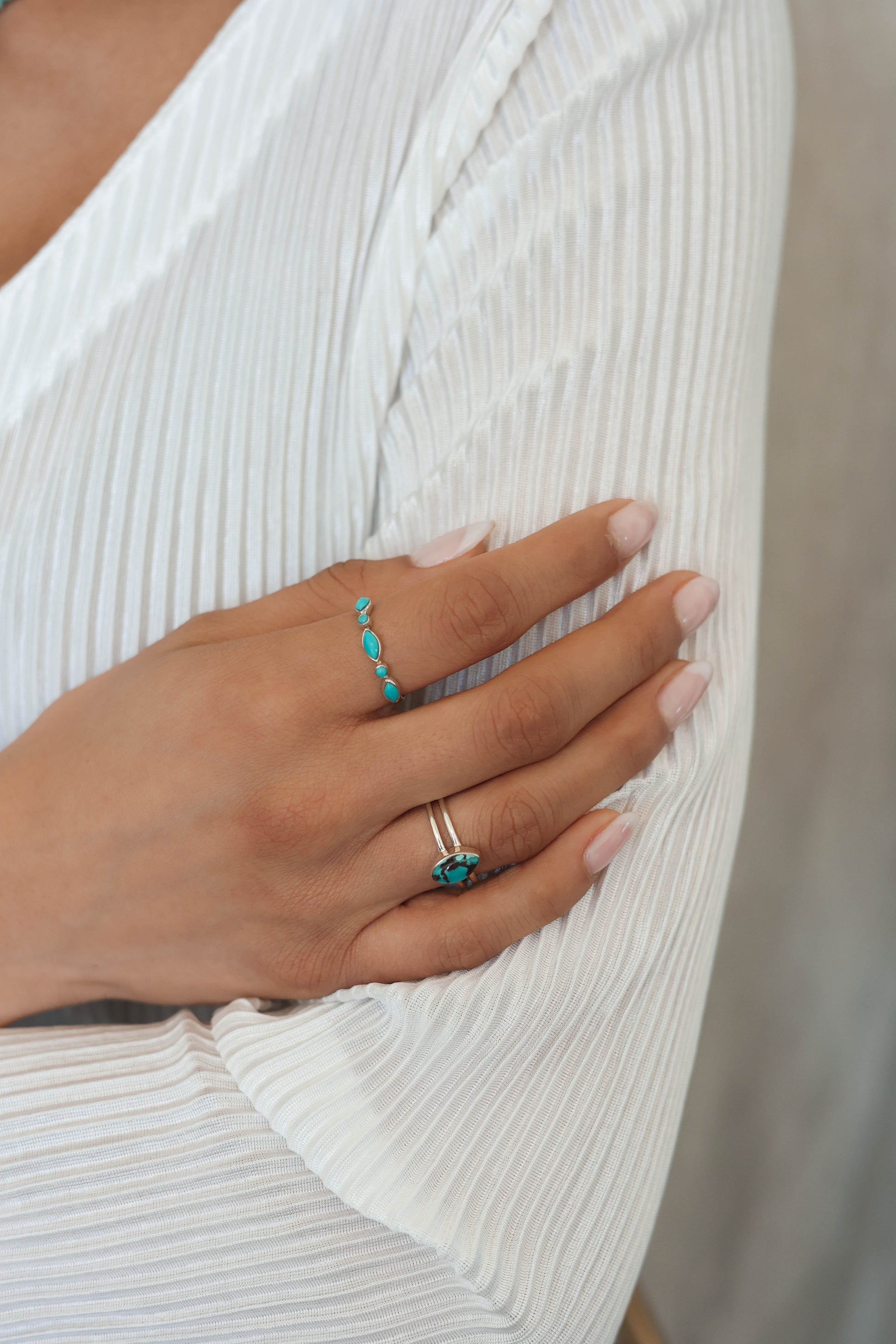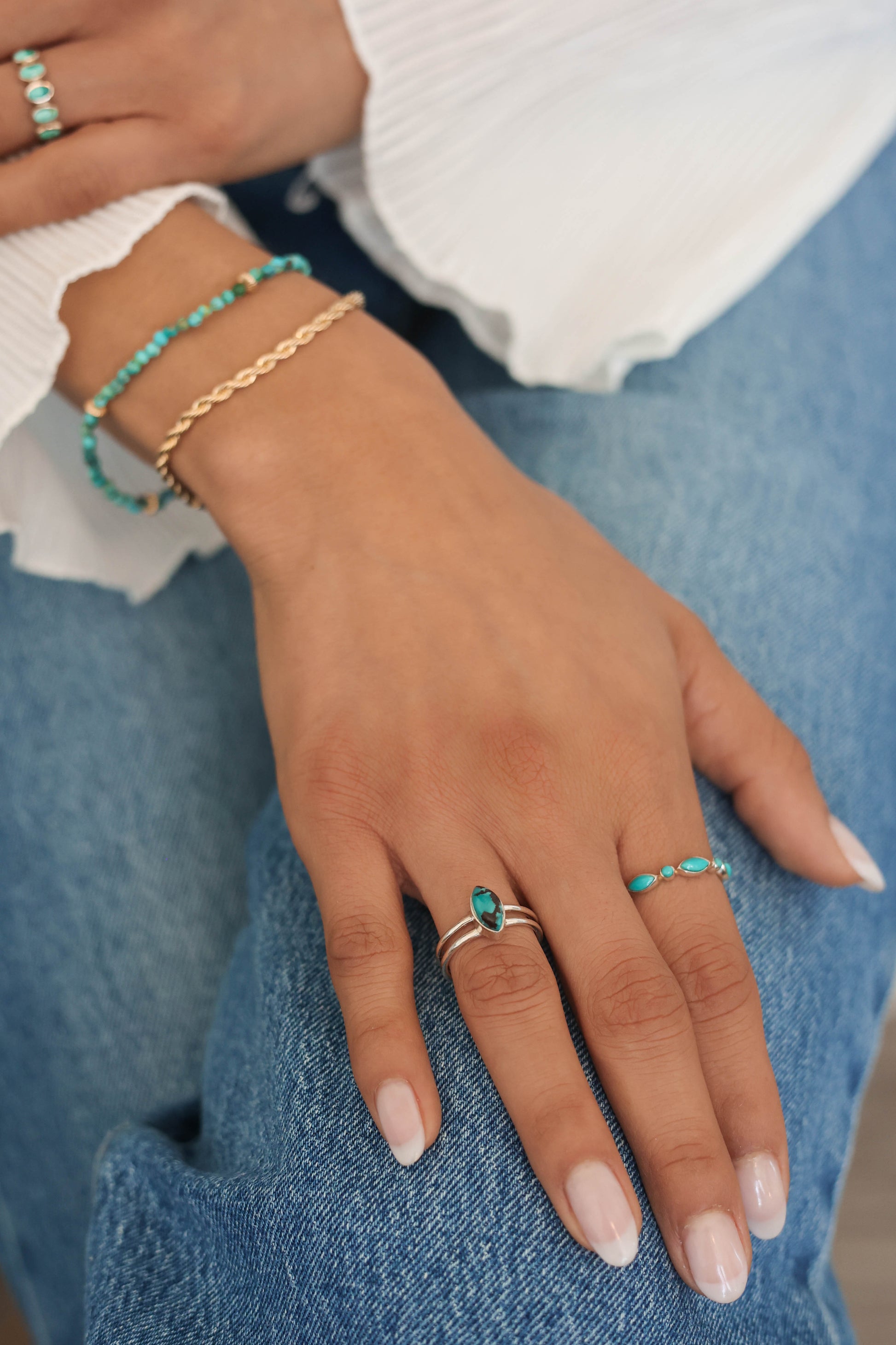 The perfect balance of classic and modern. This turquoise marquise shaped ring is set in 925 sterling silver. Love this ring for its flattering marquise shape and minimalistic design but with a pop of color!